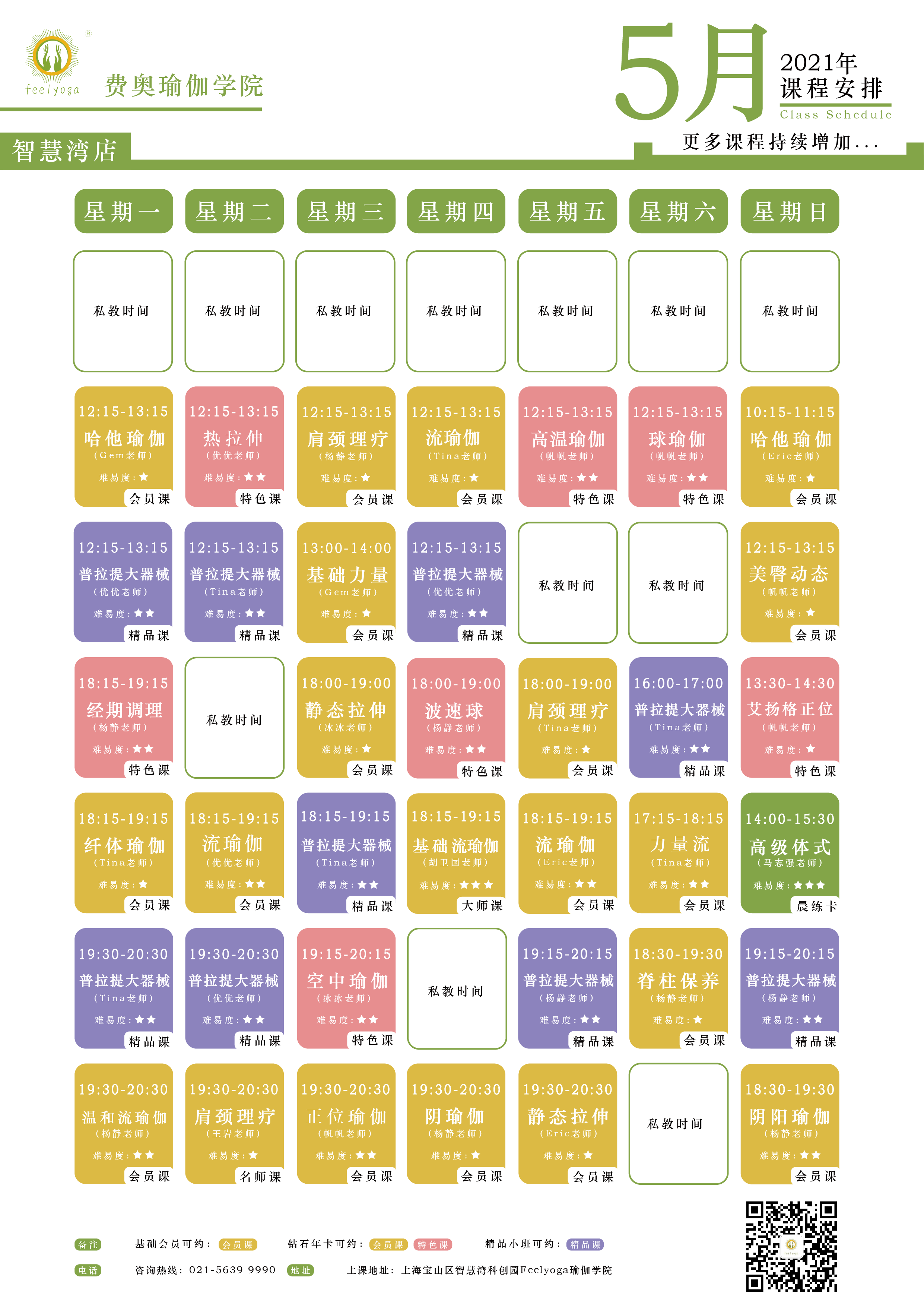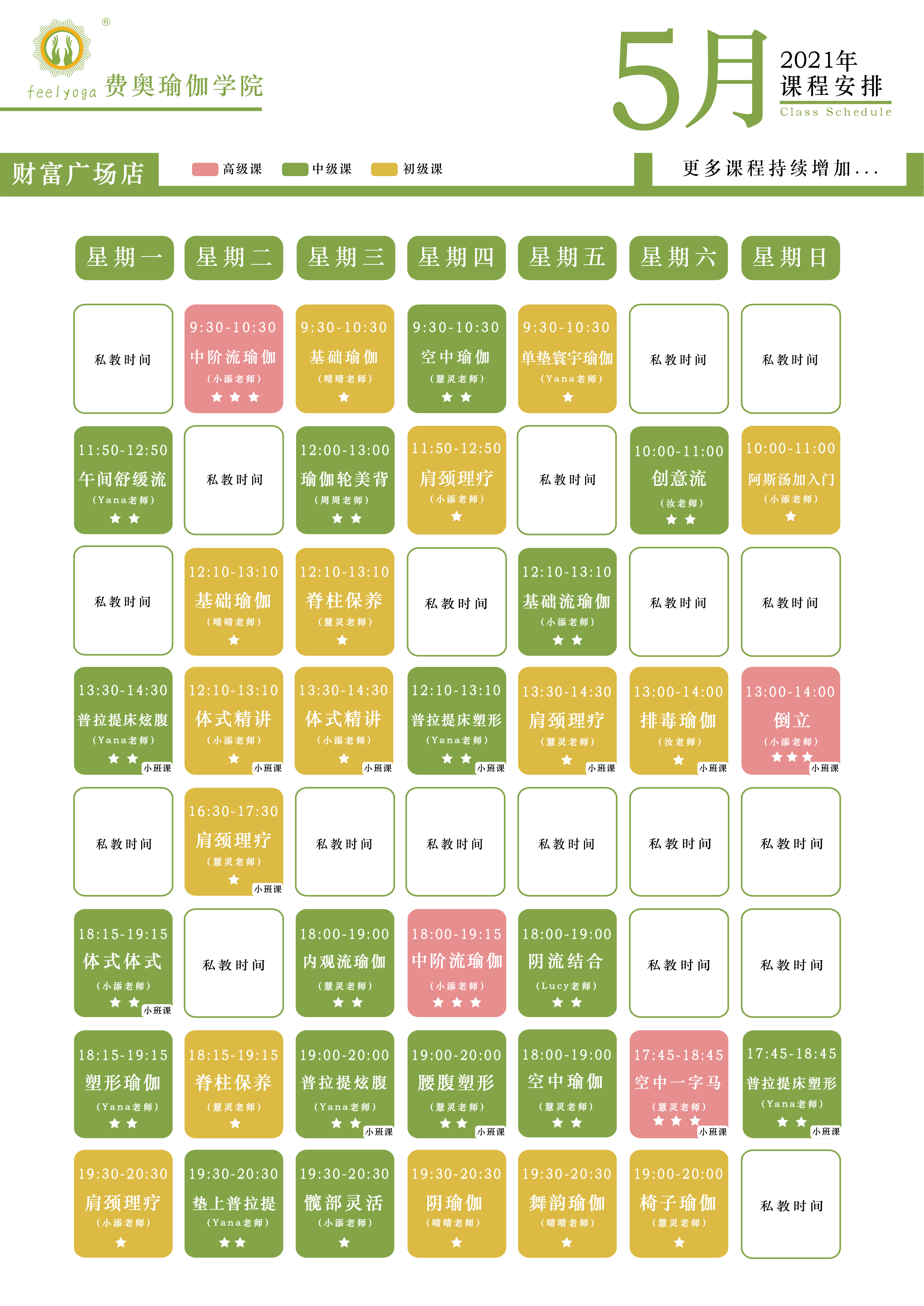 > 初夏五月,Feelyoga门店五月课程表出炉啦!