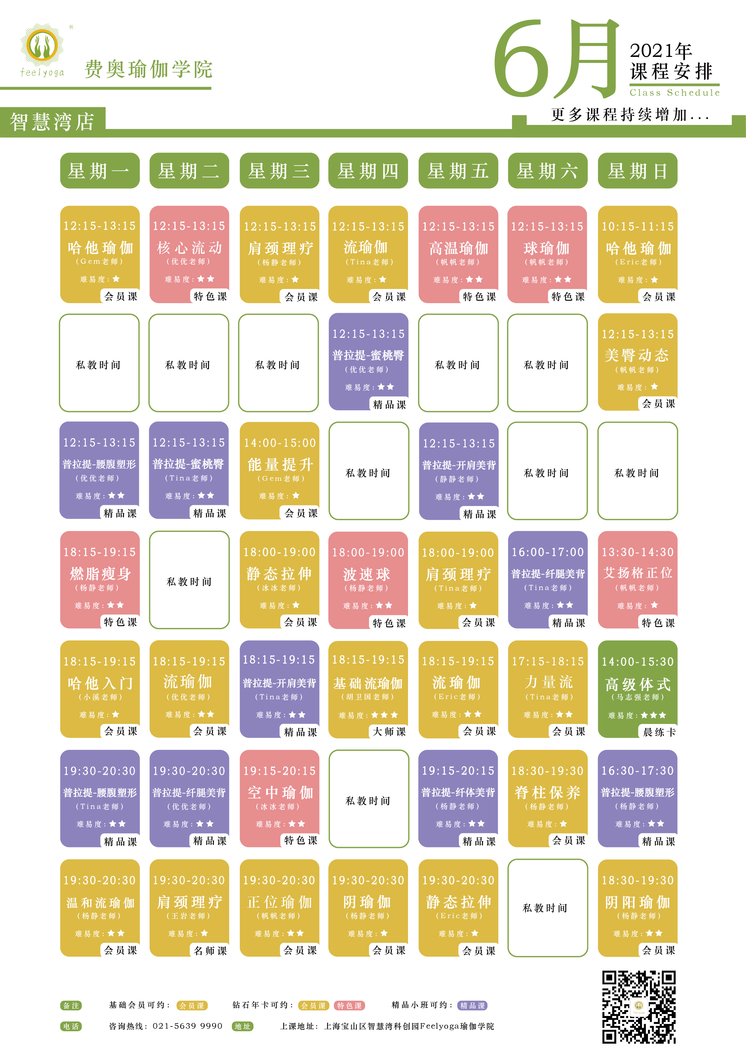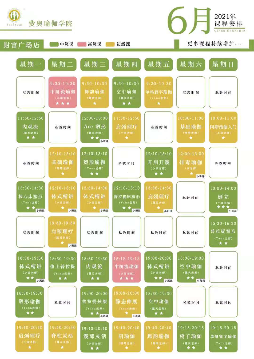 > 绿荫六月,Feelyoga六月门店课程表出炉啦!