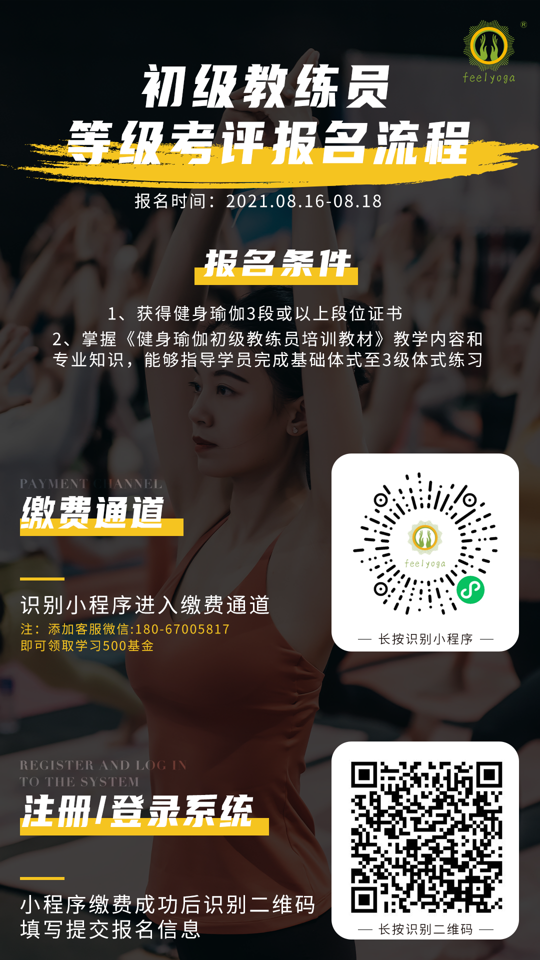 可以报名啦~由国家体育总局授权feelyoga品牌主办,考试通过由国家体育总局颁发国字号证书,持证上岗!