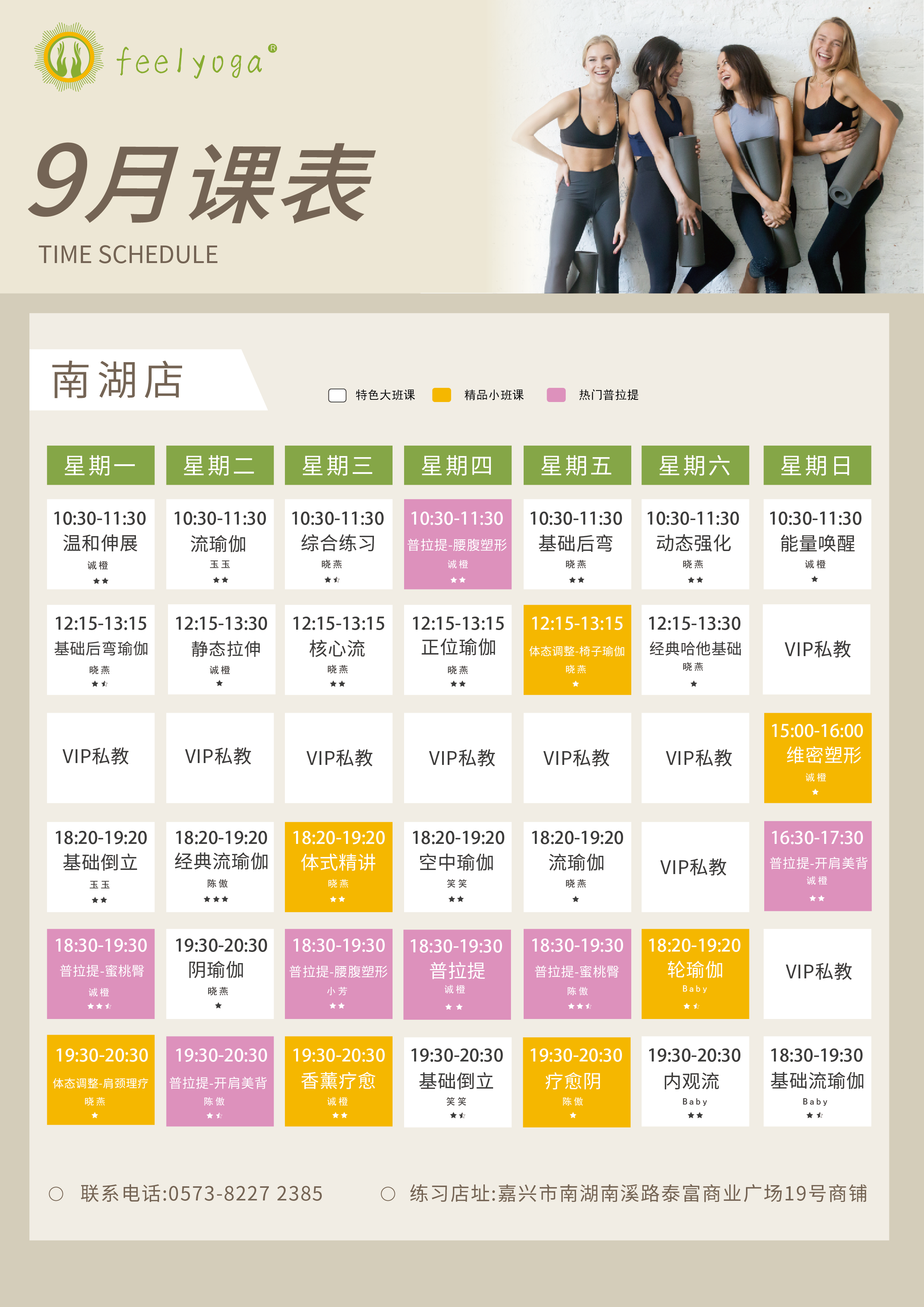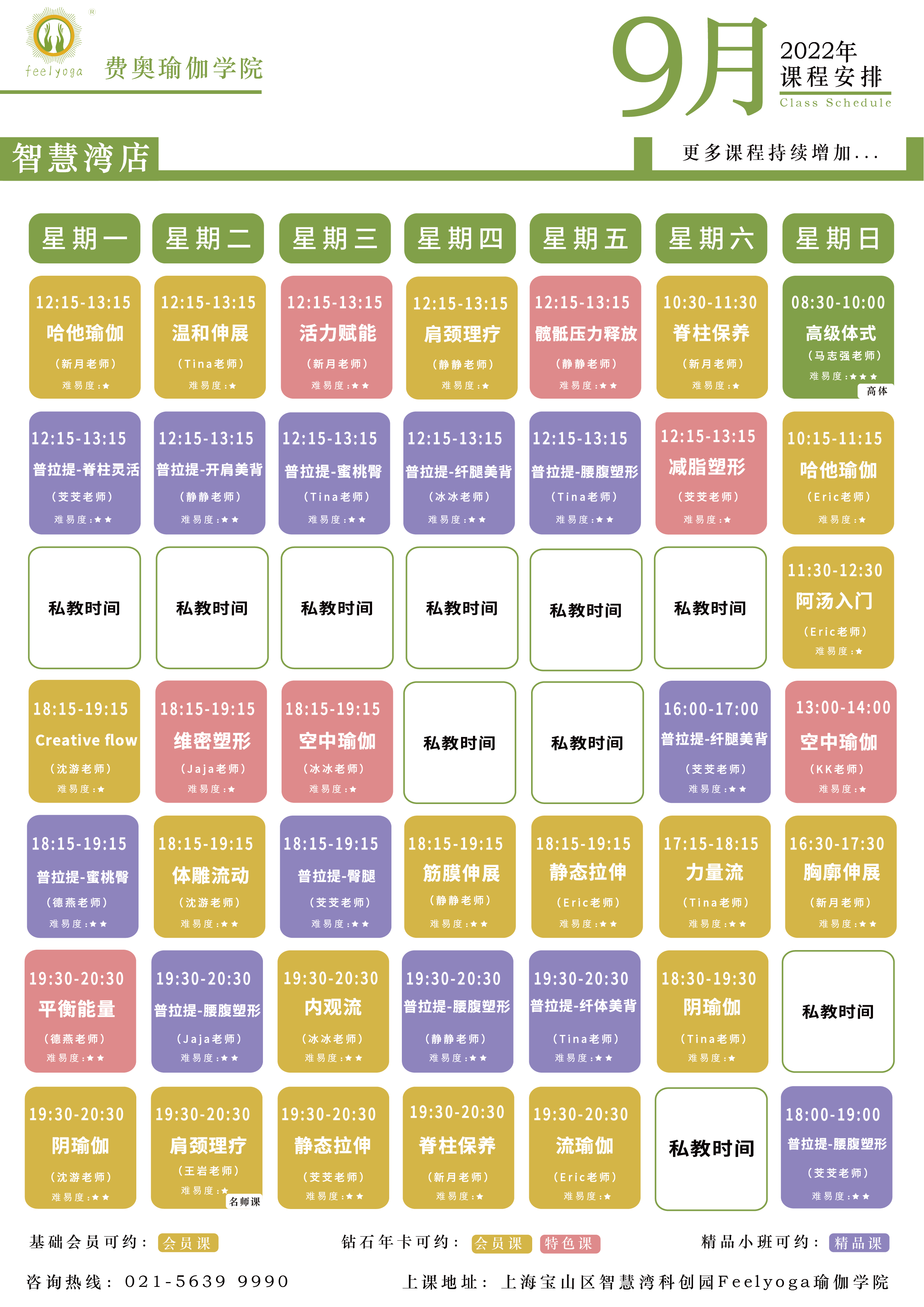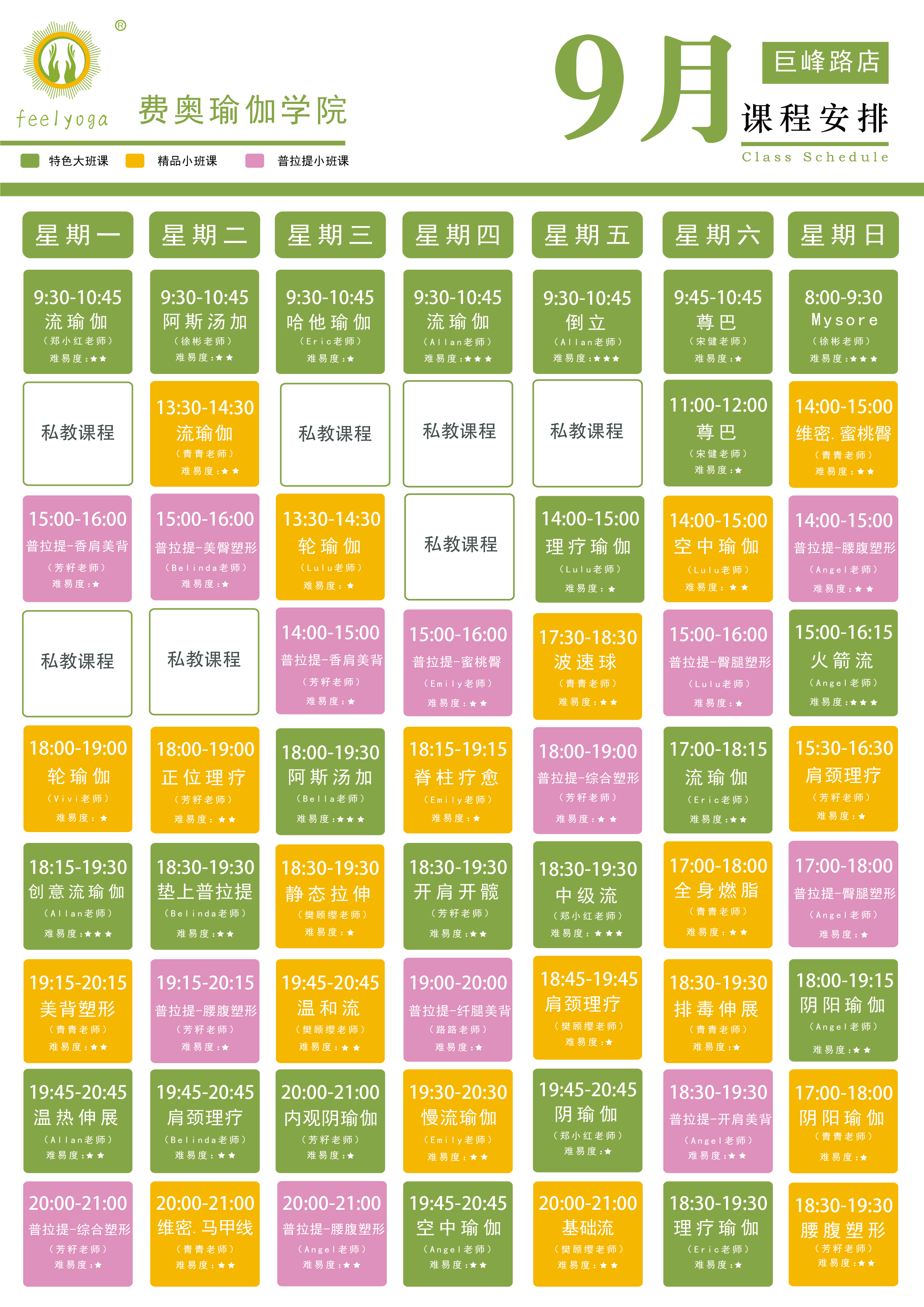 今日分享费奥瑜伽九月门店课程表,一起来看看有没有你们喜爱的课程?