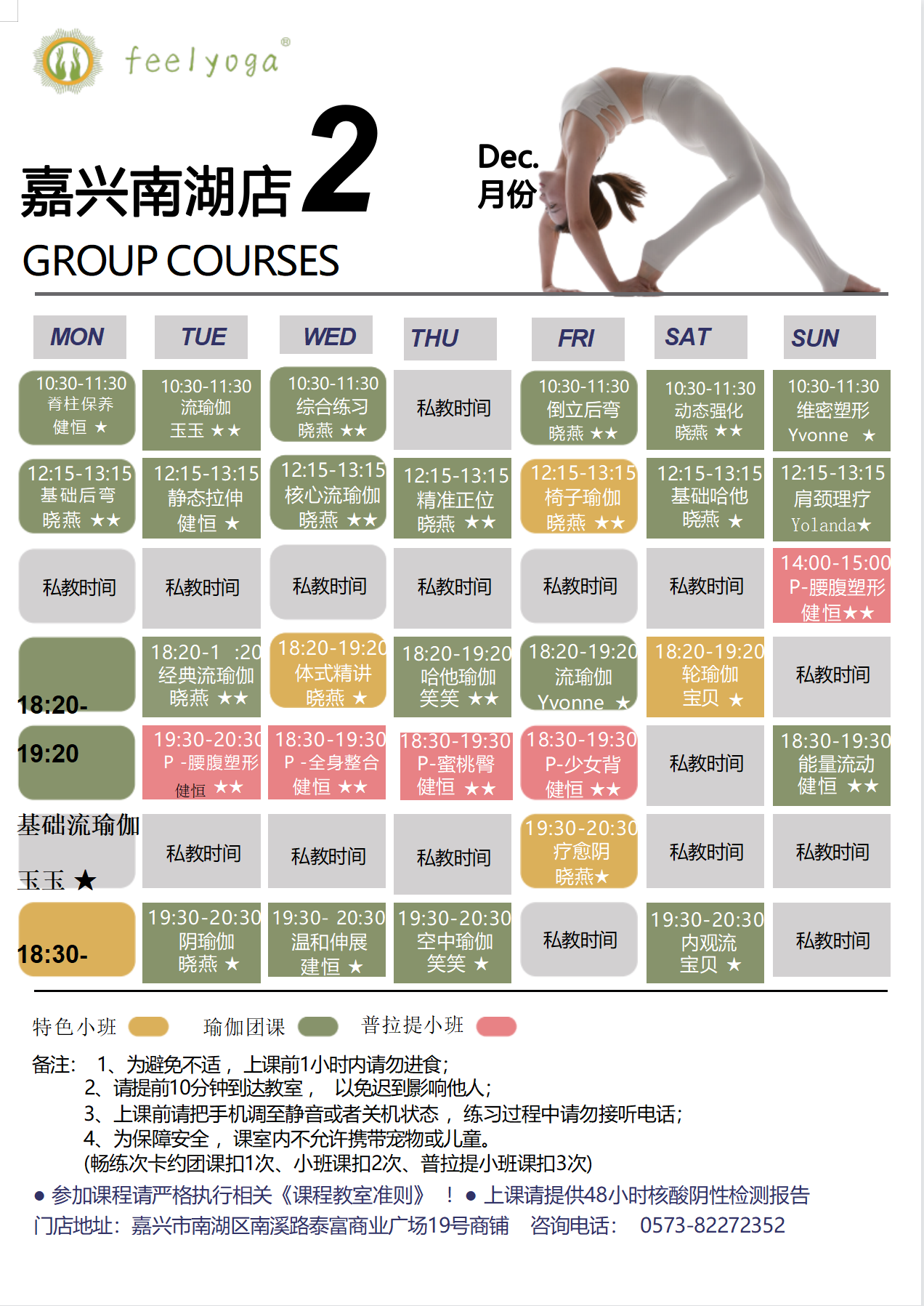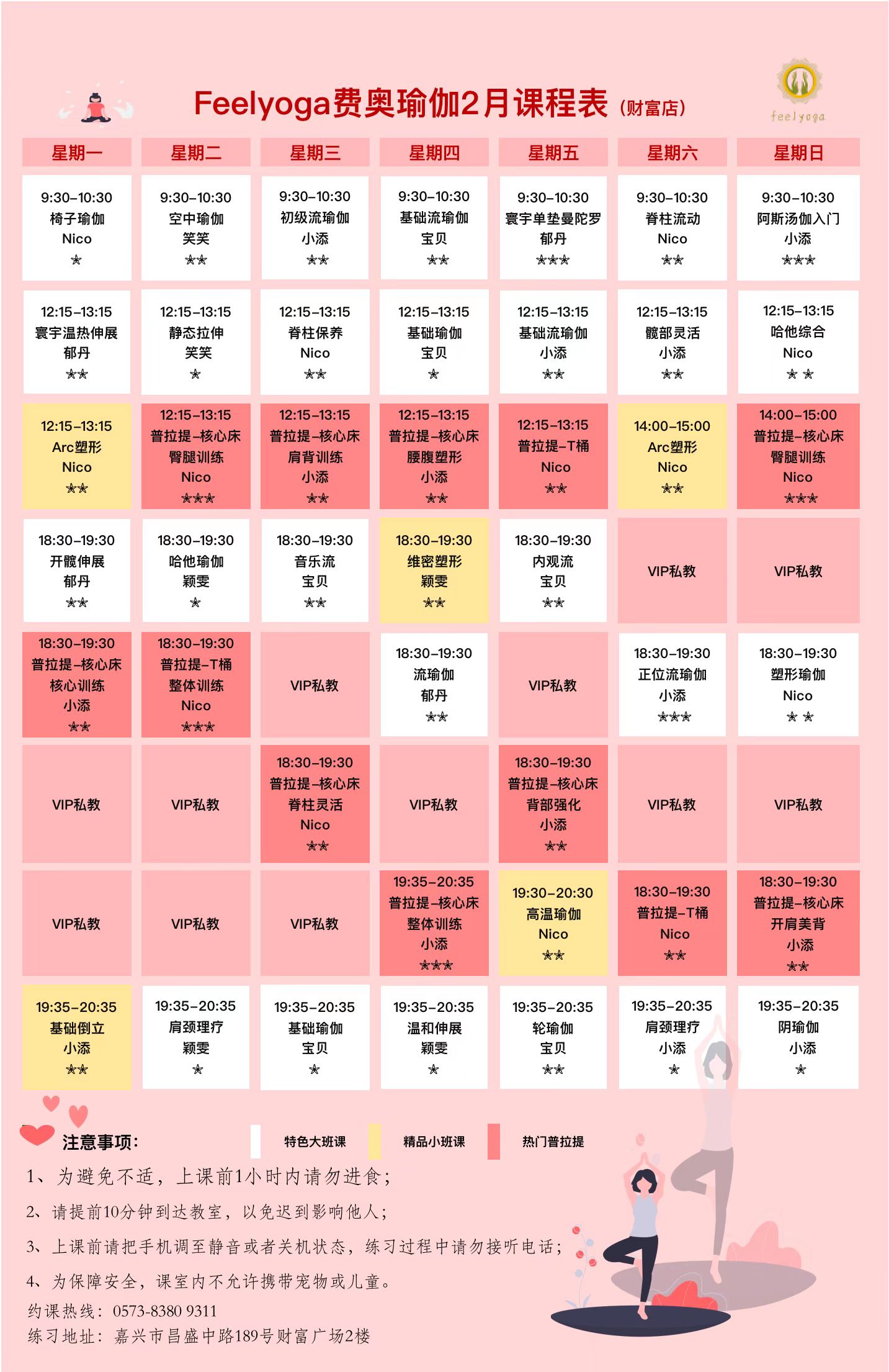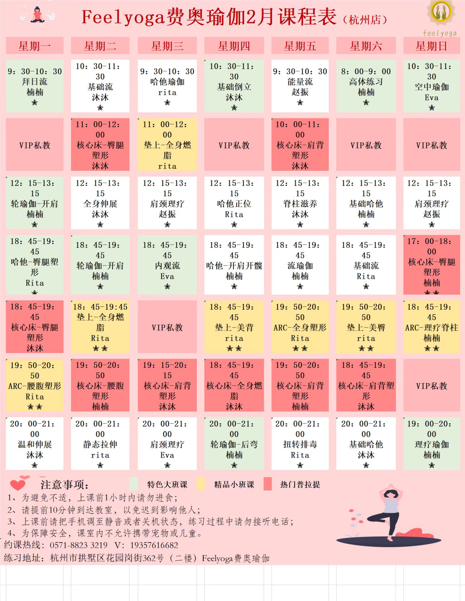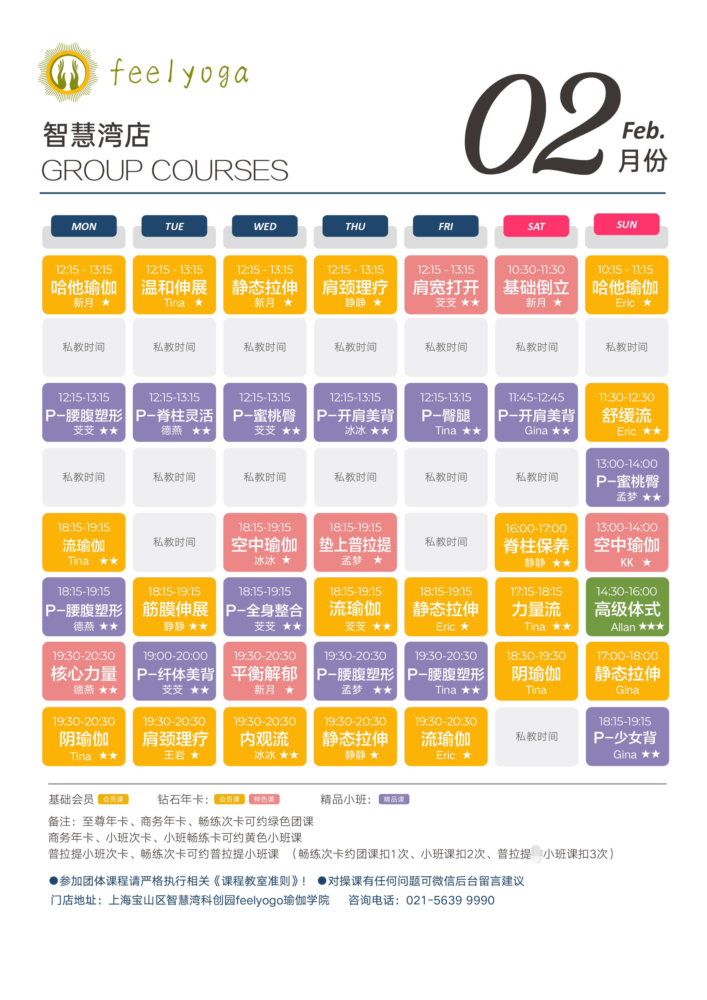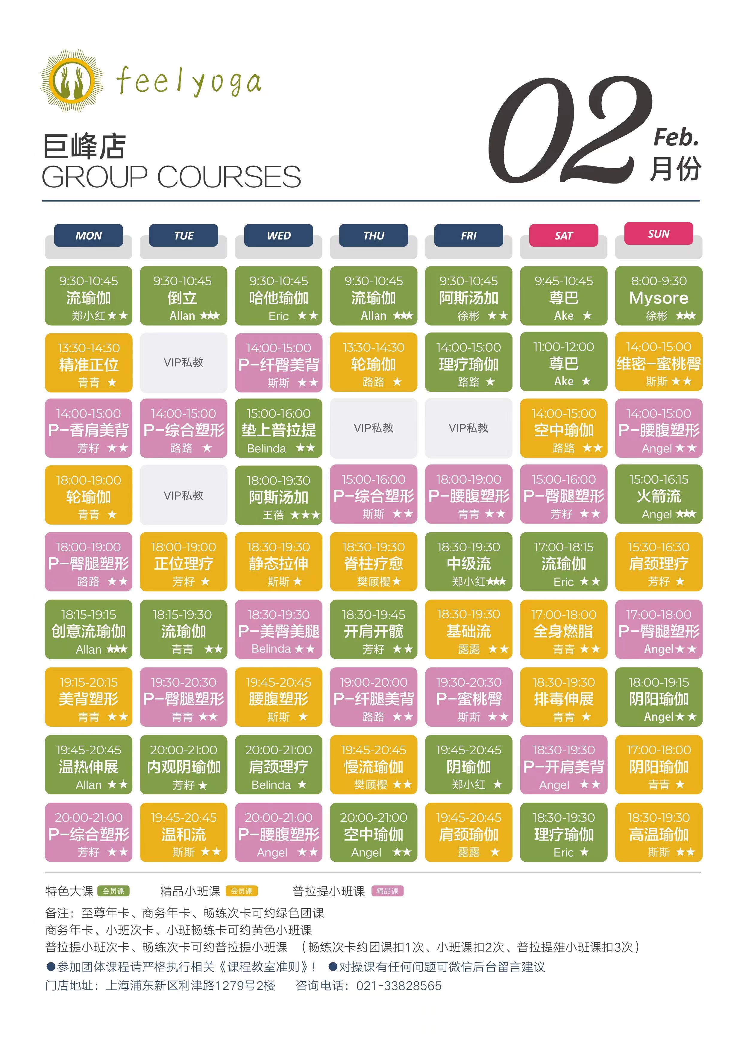 > Feelyoga2023年二月各大门店课程表