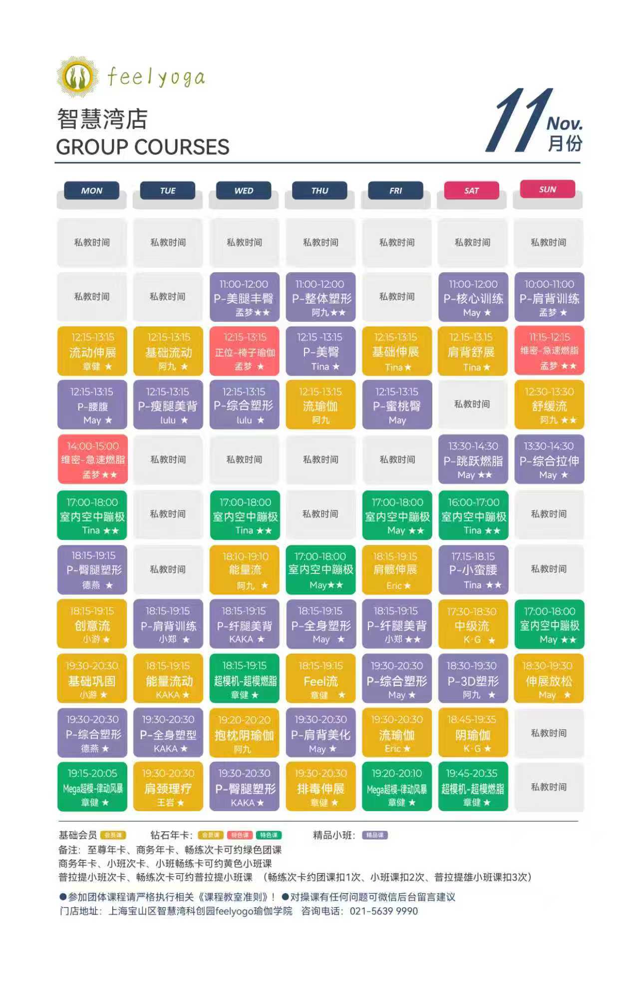 Feelyoga2025年10月各大门店课程表
